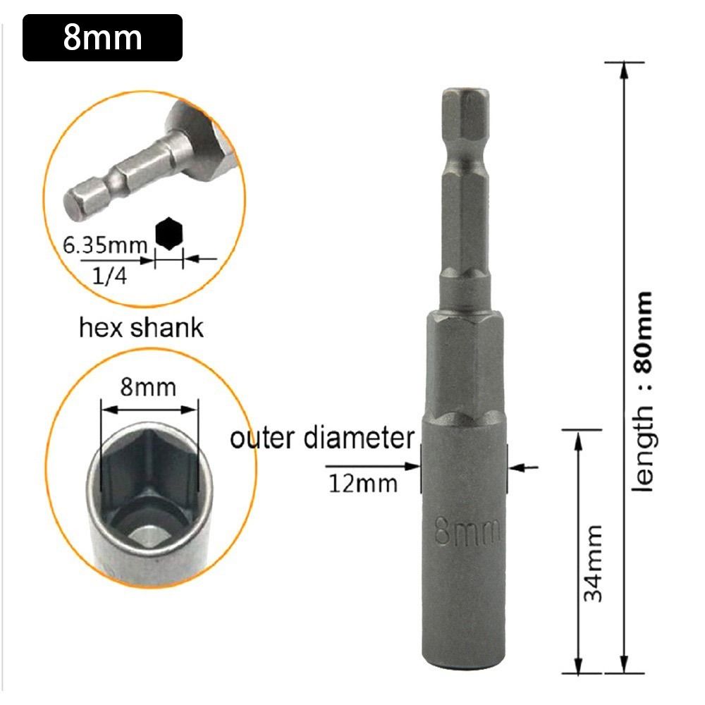 1Pcs Drive Socket Hex Socket Magnetic Nut Screwdriver 1/4" Hex Key Drill Bit Adapter 80mm Length Pneumatic Tool Accessory