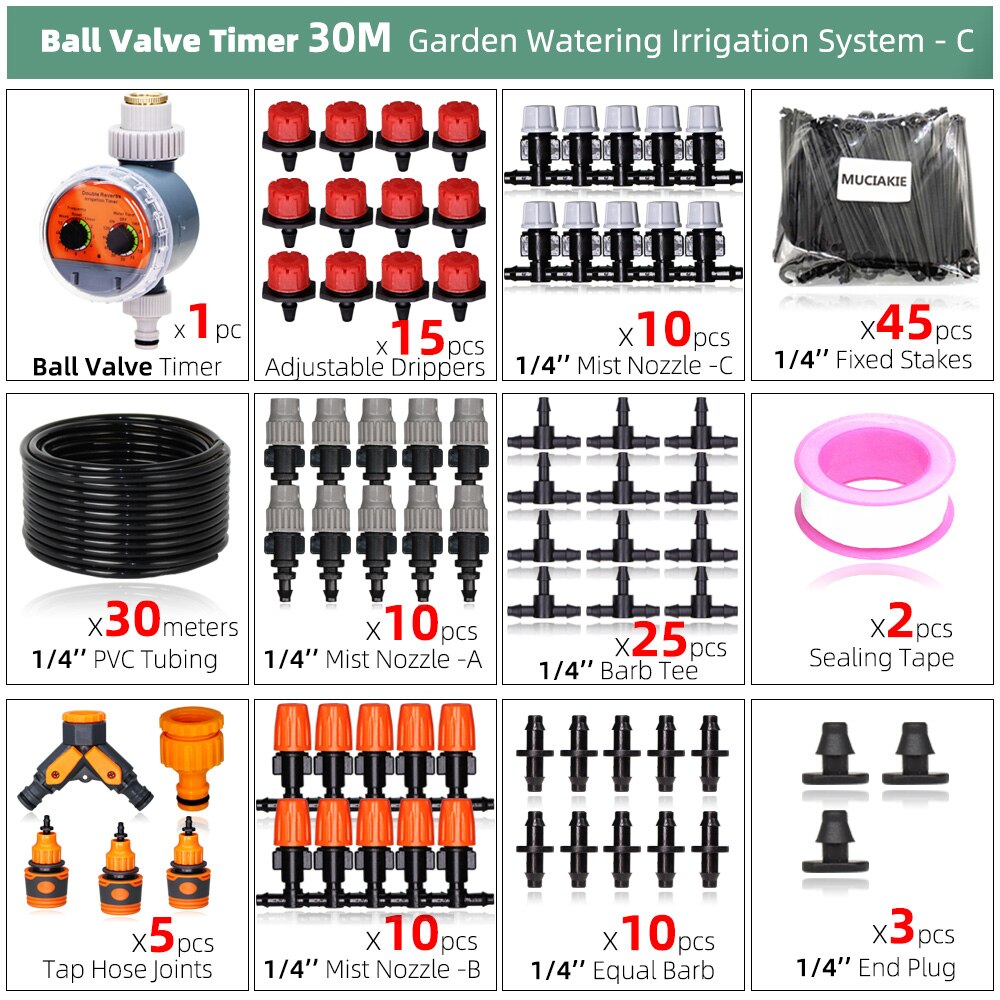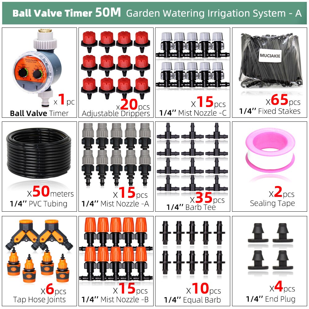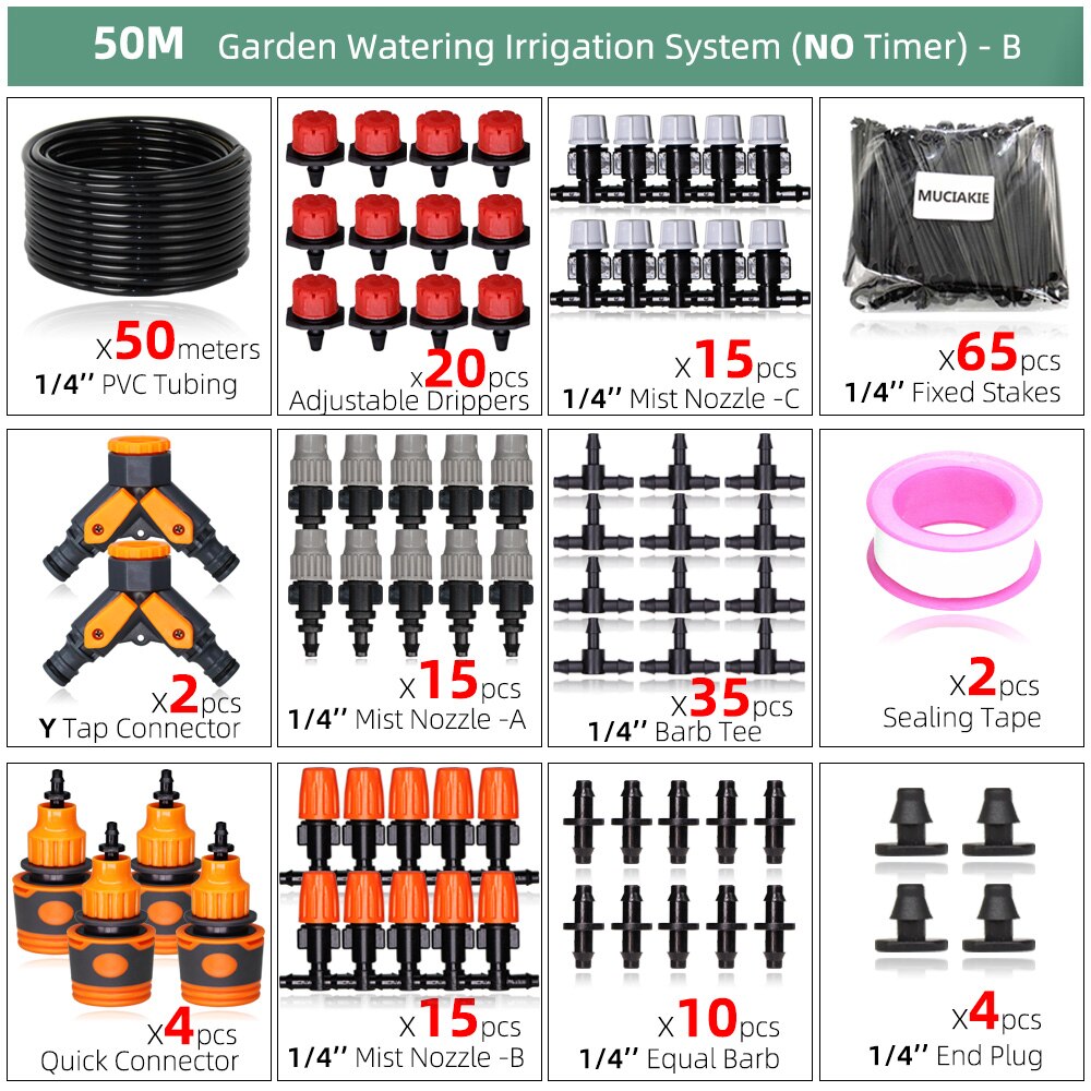 30-50M DIY Garden Drip Irrigation System Automatic Watering 1/4'' Hose Micro Watering Kits Adjustable Drippers Greenhouse