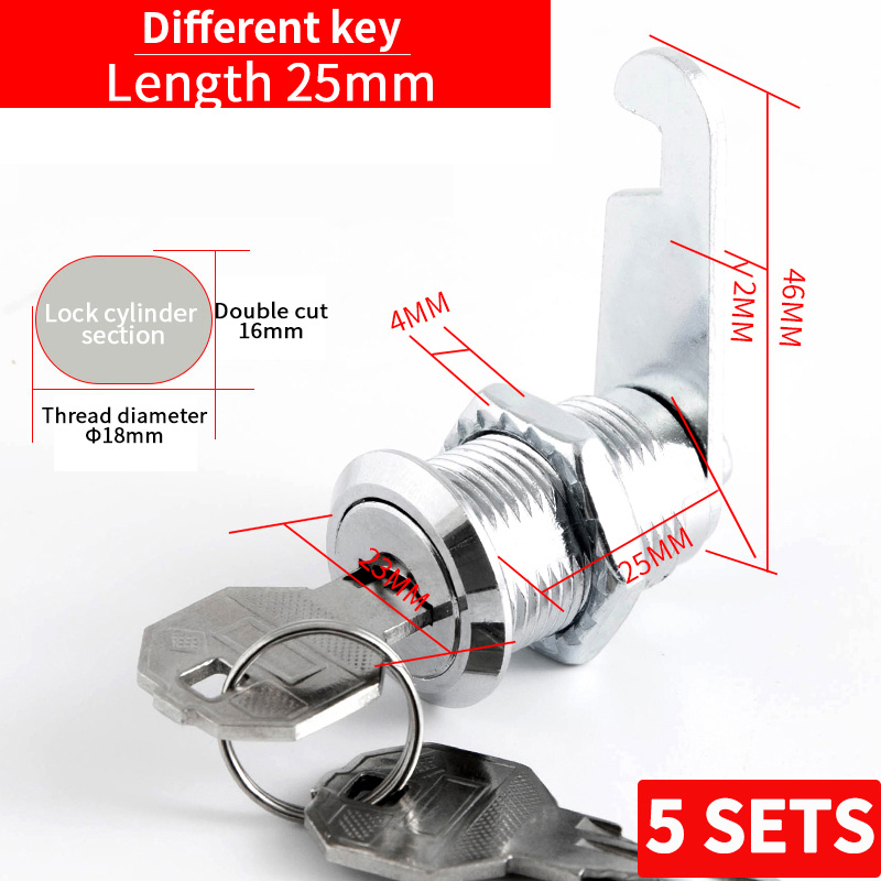 5 SETS File Cabinet Lock Iron Sheet Locker Cylinder Employee Cabinet Storage Cabinet Mailbox Universal Tongue Lock With 2 Keys